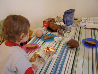 On April 15th Eyquem turned 6 months old, and after all that time exclusively on Mama’s milk, he got his first taste of (home made) cereals. He also got some gifts, and, in keeping with the guarderia’s tradition, Gadea got some chuches (sweets).