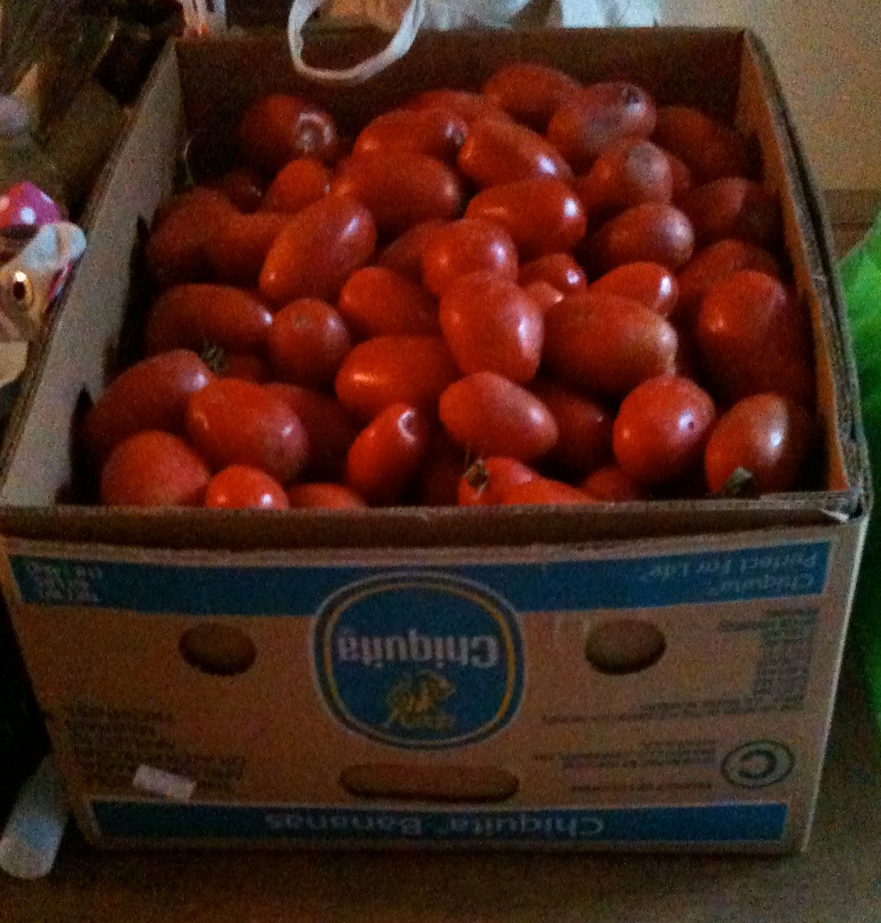 We have worked hard (especially Noe) to transform the 50 lbs of tomatoes pictured above in 14 liters of tomato sauce for the winter days…