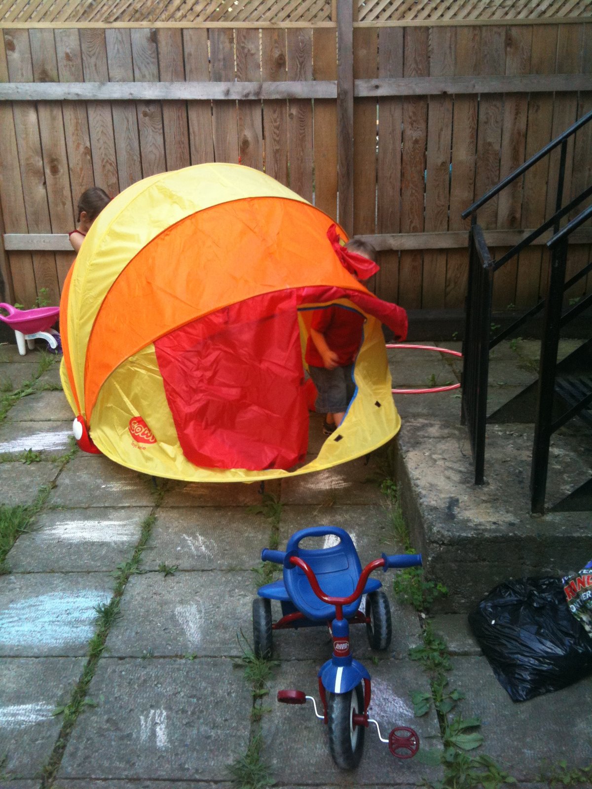 Another exciting moment: trying out the beach uva protecting tent…after a little enervment building it from the part of dad!