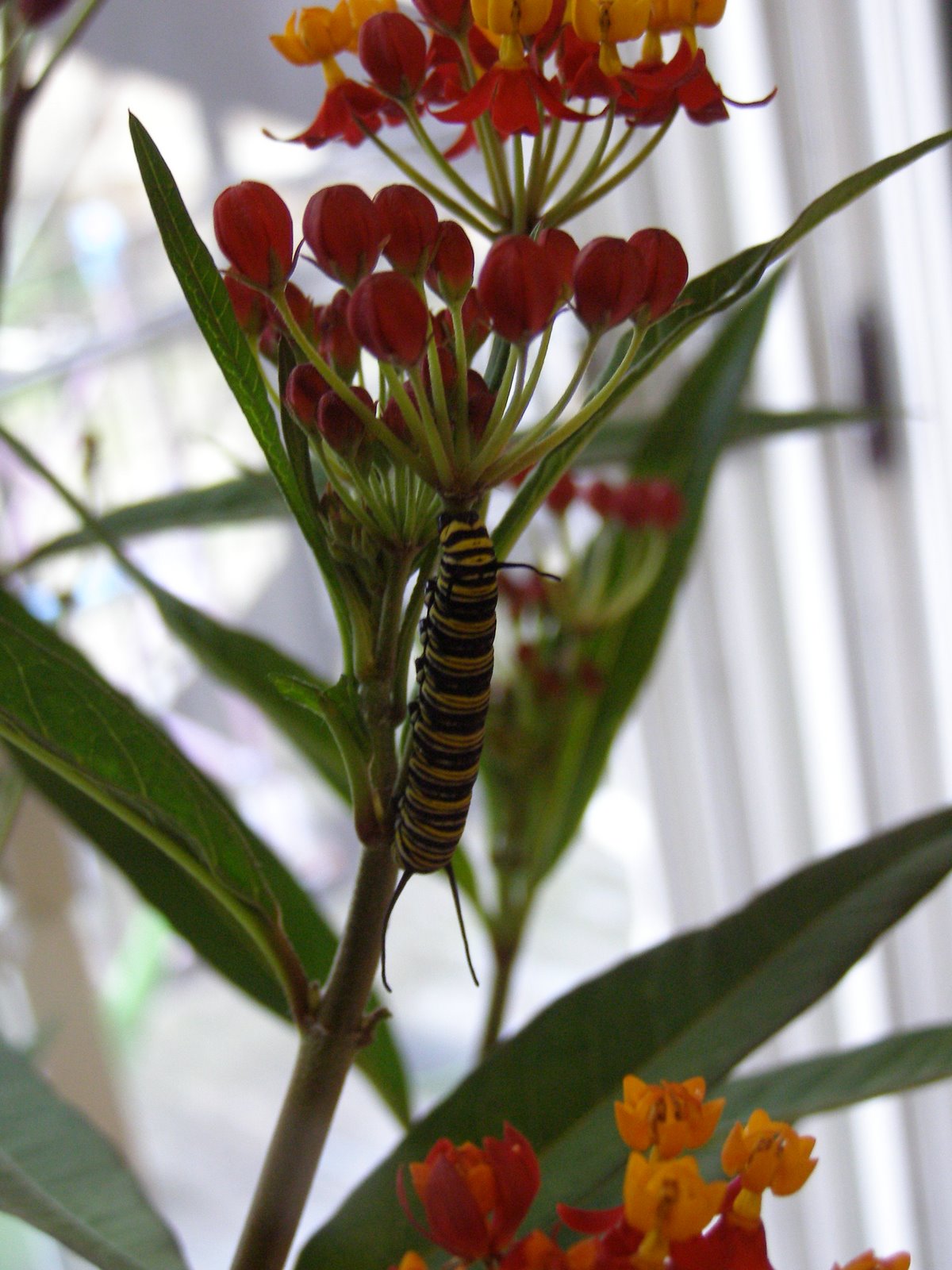 Our experience raising monarch butterflies has come to an end: our two chrysalides and the 4 caterpillars we received all flew away. This mornning we even witnessed the emergence of our 6th butterfly live! It was truly a great experience for the kids and even more so for the adults! Below you can see chrysalides, caterpilars and monarchs…Here is a little, but fantastic, you tube video (not by us) on the transformation. And here is the full photo gallery.