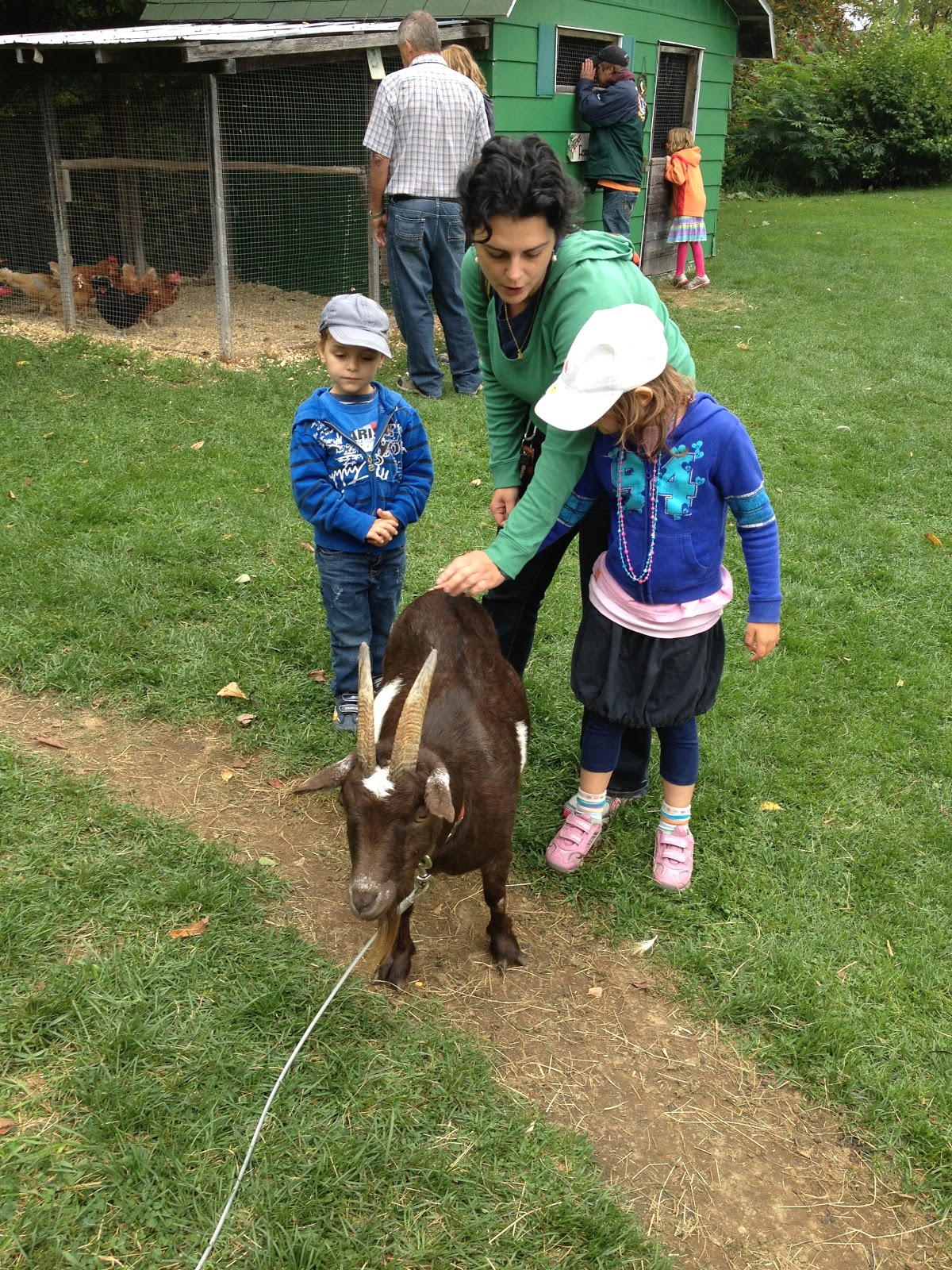 Début Septembre, pour la deuxième année consécutive, nous sommes allés faire le tour des fermes pour la journée portes ouvertes de l’union des producteurs agricoles (Noe et Sam ont du suspendre leur opposition aux politiques de ce cartel pour la journée). Les cochons avaient été le gros succés l’année dernière, nous avons donc commencé là, mais nous sommes également allés voir des moutons (en l’honneur du favori de la famille, Shawn) et les abeilles. Chez l’apiculteur, il y avait toutes sortes d’animaux (biquette, âne avec un anon de lait, chatons, poules, lama, et plus). Et bien les tracteurs ont bien entendu eu beaucoup de succès aussi!