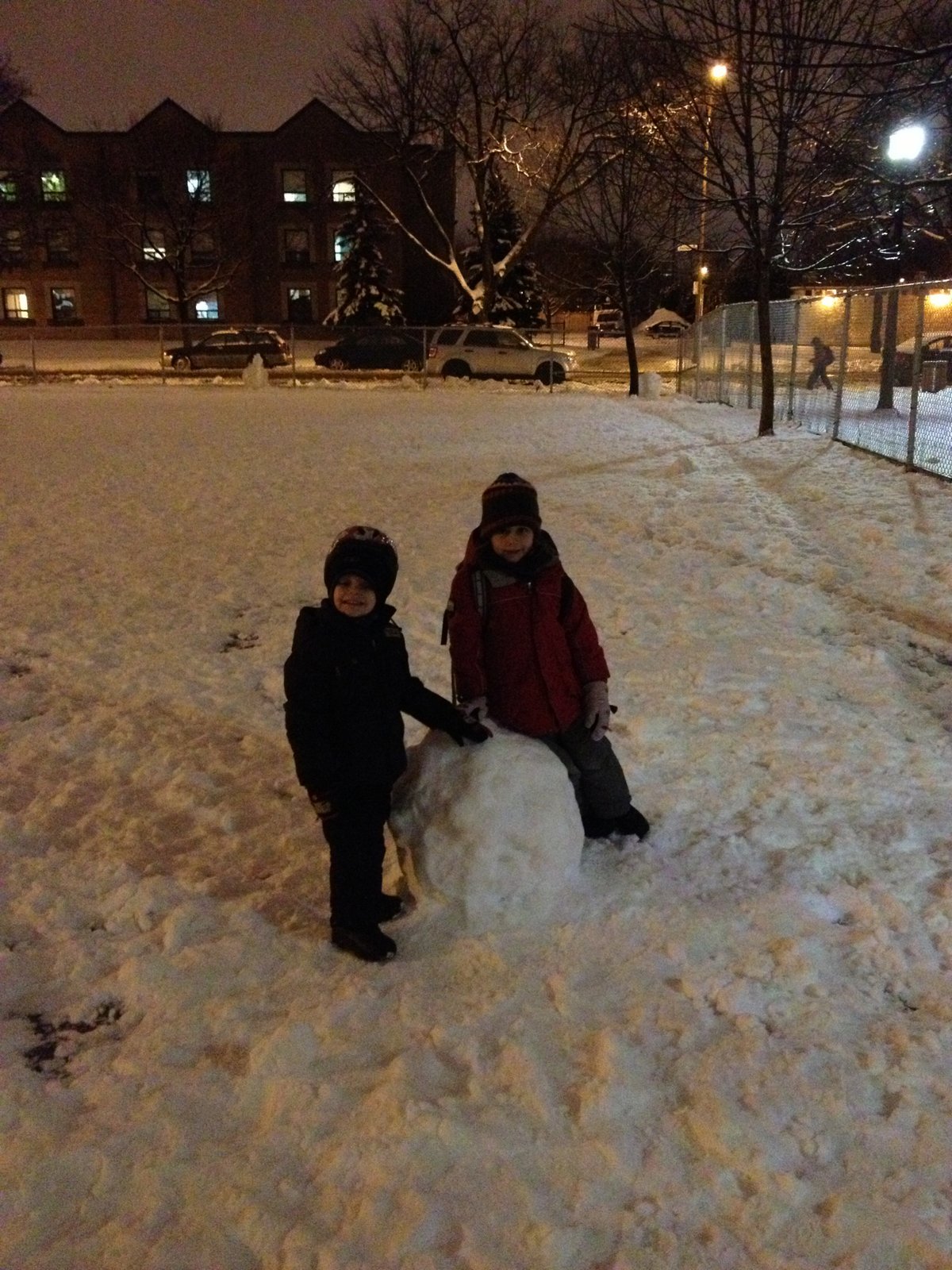 Gadea enseña a Eyquem la bola de nieve que hizo con sus amigos de la escuela.