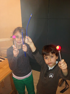 We got some fun pencils and pens from work (and, yes, you got it: the lightbulbs light up!)